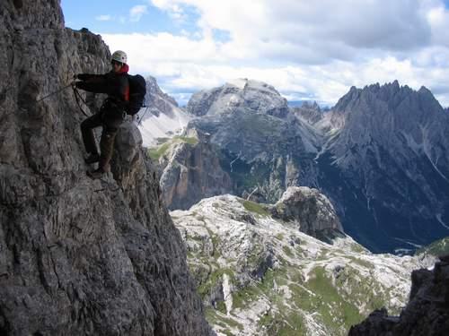 Odpoledne jsme tedy alespoň vyplnili jednou ze dvou hezkých Via ferát v okolí. Byl to takový můj ferátový návrat po deseti letech, kdy jsem tady zajištěné cesty běhal poprvé. Na zpáteční cestě k Auronzu potkávám Jetiho z HoSoHoPo. Tohohle chlapíka vidím většinou někde v horách nebo na skalách. Nadšeně povídáme. Přijelo jich dneska dvacet a zítra mají v plánu Dibonovu hranu na Cimu Grande. Asi jako my a dalších sto lidí. To bude nával!...