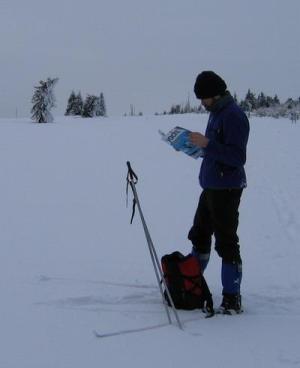 Cesta od lomu přes Wysokou Kopu (1126 m. n.m., nejvyšší vrchol Jizerek), Stog Izerski je značená červeně, ze Stogu na Smrk zeleně. Na 13 km úseku jsem značku viděla třikrát, cesta je bez tyčí a někdy neprošlapaná (5. 2. jsme prošlapávali třetinu, 28.1. asi pětinu) a opravdu bych tu nechtěla jít za špatného počasí. Nejen proto, že bych neměla na dlani české Jizerky a