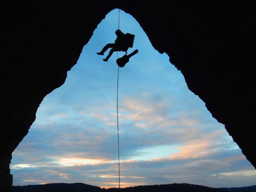 Premiéru slanění do Jeskyně Pod Křížem měl Ríša, kterého Gobo pouze jistil dole.