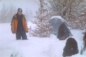 Rychlebské hory zdají se neatraktivní, zastrčené a liduprázdné a tudíš idealní pro zimní výlet. Stejný pocit měl zdá se i pionýr a jeden pražský oddíl, na který jsme druhý den narazili. Bezproblemový postup na severu díky nedostatku sněhu se s přibývajícím časem změnil ve sněhové orgije. Nemaje sněžnic ani běžek jsme se třetí den prohrabali rychlosti dva km/hod na Smrk a pak podle značení kolem veselého silvestrovského stanu na Paprsku do našeho zmrzlého silvestrovského stanu v lese. Nový rok jsme oslavili celodenním broděním se podél běžkařských stop na Kralický Sněžník, odkud jsme následující den sestoupili do Dolní Moravy plní pocitů z nádherných výhledů v husté mlze a promočenýma botama..proste super (Tomáš a Jirka)
