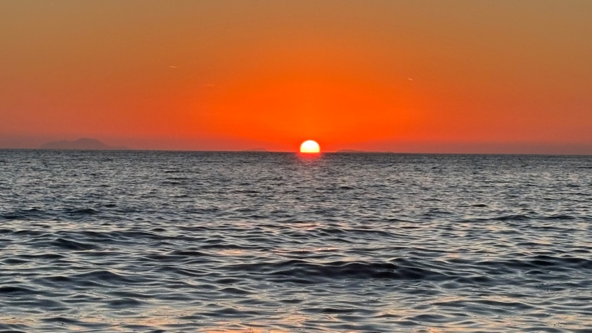 Ve středu jsme cílili na ostrov Telendos, na který koukáme večer co večer při západu slunce z terasy. Má několik zajímavých sektorů, skálu co žere ruce a kolem je jenom moře, skály a několik dalších lezeckých nadšenců. Na rozlez jsme si dali s Vojtou jedinou lehčí cestu která nebyla obsazená. S obtížností 5c, délka 32metrů, uklouzaná a ještě šla po skále do strany. Takže naše rozlezová cesta nás pěkně vyřídila. Našli jsme si jiné cesty, co byly přívětivější. K velkému úspěchu si zde Vojta OSnul 6b+ a já si na prvního bez odsedu vytáhla moji zatím nejdelší sportovkovou cestu 35metrů. V průběhu našich úspěchů měli výtečné výsledky i ostatní, kde si Happy OSnul dlouhatánské 6áčko 40metrů, hned nato 6béčko a završil to 6céčkem. Janča a Tomáš zdatně stačili Happyho tempu a nenechávali se zahanbit. Závěr dne byl epesní, kdy jsme seděli na pláži a dívali se jak sluce zapadá za horizont, až do chvíle, kdy ho moře pojmulo.