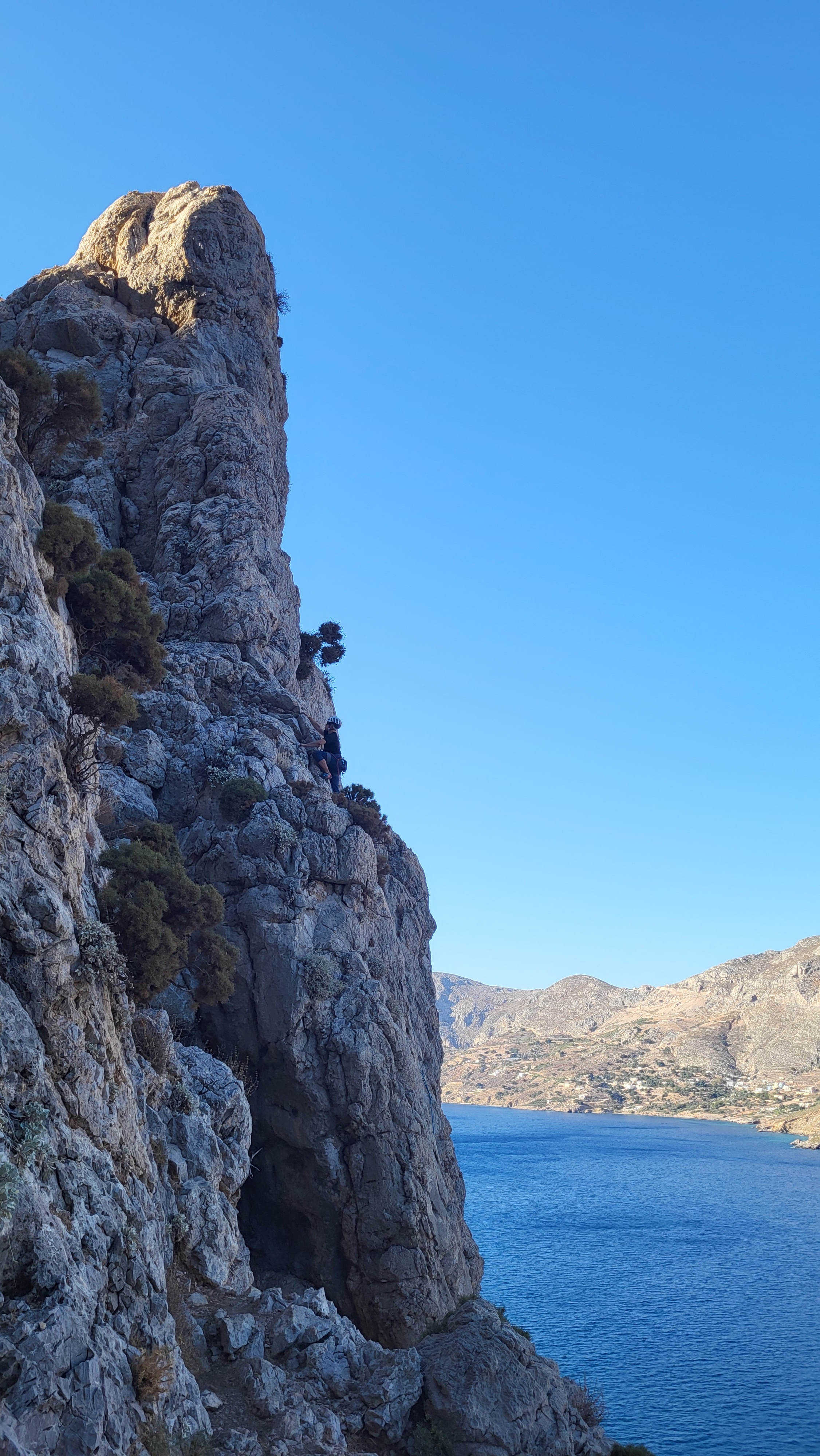 Aby náš pobyt na Kalymnosu nebyl jen pohádkový, tak jsme další den zamířili do sektoru Arginonta Valley, kde jsme celkem vystřízlivěli z toho kouzelného opojení. Bylo tu narváno jak na Offu. Všude plno Čechů, kteří nejspíš zase tak často nelezou, a nám téměř krvácely oči, jakým způsobem se navzájem jistili. Příklad, čeho jsem byla svědkem bylo, kdy se (nejspíš teta) rozhodla lézt a nechala se jistit svým synovcem. Partner check proběhl způsobem „tak já lezu, dej si mě do jistítka“ a ve chvíli, kdy se paní nacházela již nad druhou preskou, se synovci teprve podařilo to lano do jistítka vůbec chytit (mezitím se rozčiloval, že mu teta s tím lanem utíká a on si jej nestíhá do jistítka dát). Neřkuli že jeden pán jistil grigrinou bez efektivního držení lana (spíš s absencí držení lana) a nebo partou pětice lidí, co obsadili dvě moc pěkné cesty, aby tam mohli lézt jenom oni a přitom se u toho fotit. Nikdo tam přes dvě hodiny nemohl lézt (z toho vlastně v těch cestách moc nebyli, jen si tam nacvakali presky). Chuť jsme si spravili v sektoru Gamos, kde cesty stavěl Slávek z Víru. To, že máme možnost zde na ostrově být je jeho zásluhou, kdy svým nadšením z tohoto ostrova zlanařil na Kalymnos Happyho s Jančou a ti sem v průběhu let zlákali další členy oddílu.