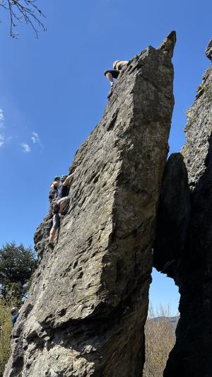 Sotva jsme se vzpamatovali z nálože technik, které jsme se naučili na akci Chytání pádů před dvěma týdny, je tu další horoškolní akce pro nováčky – Sportovky venku, neboli úvod do sportovního lezení ve skalách. Místo činu: Borová skála v Prokopském údolí v Praze.